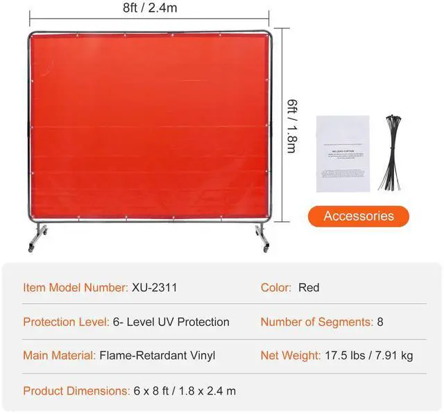Protection Level: 6- Level UV Protection,Number of Segments: 8,Color: Red,Item Model Number: XU-2311,Product Dimensions: 6 x 8 ft,Net Weight: 17.5 lbs / 7.91 kg,Main Material: Flame-Retardant Vinyl