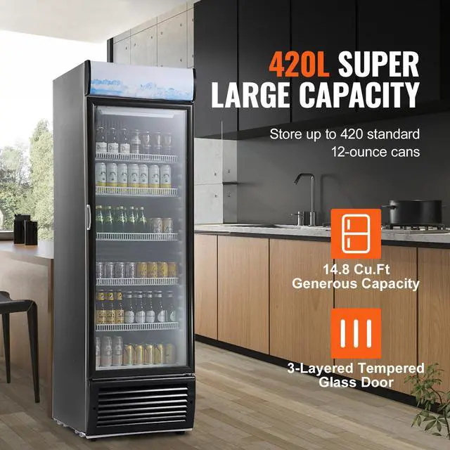• VEVOR Commercial Merchandiser Refrigerator, 14.8 Cu.Ft / 420L Beverage Refrigerator Cooler Merchandiser, Glass Door Display Refrigerator Upright Fridge with 5 Adjustable Shelves, Customizable Lightbox