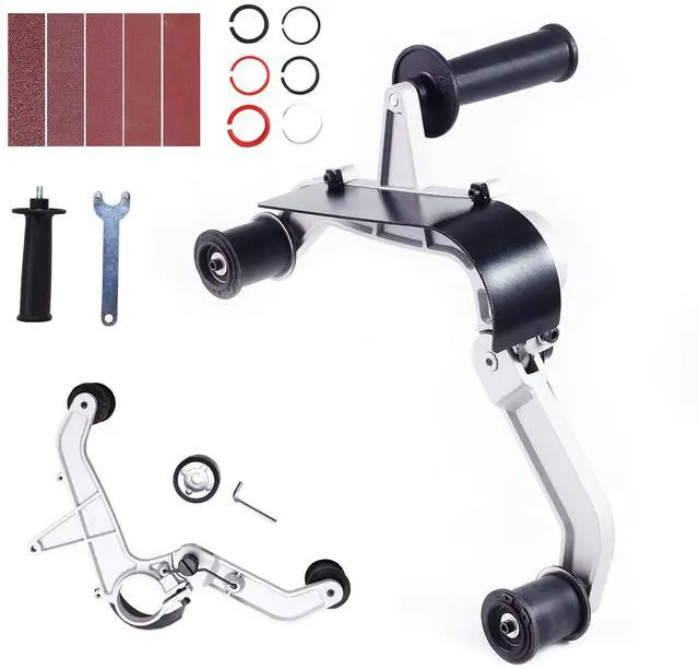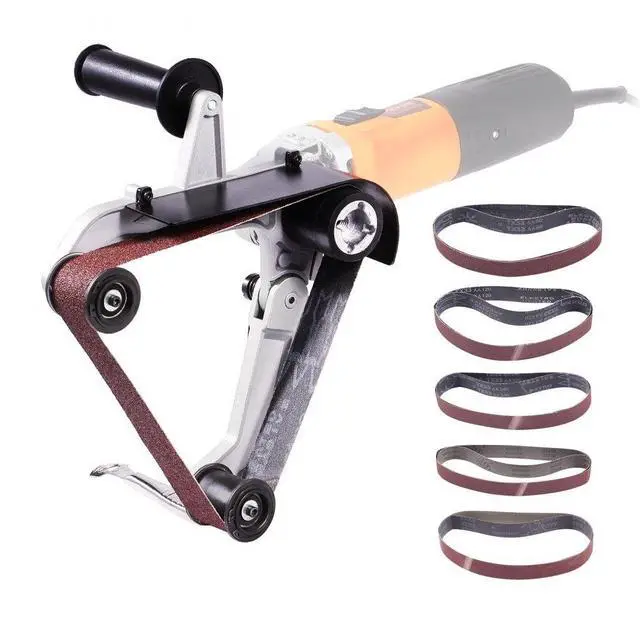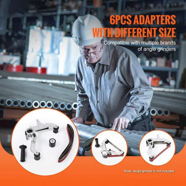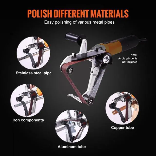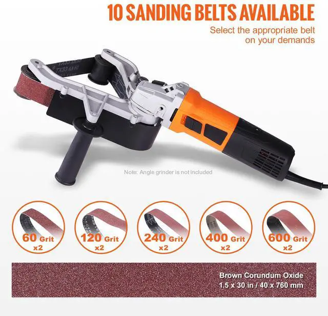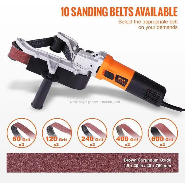 • VEVOR Belt Sander Adapter for Angle Grinder, Pipe or Tube Sanding Attachment with 5/8-11" Imperial Thread and 10PCS Sanding Belts, Belt Sander Attachment Pipe Polishing Adapter for Rust Removal