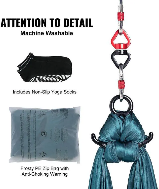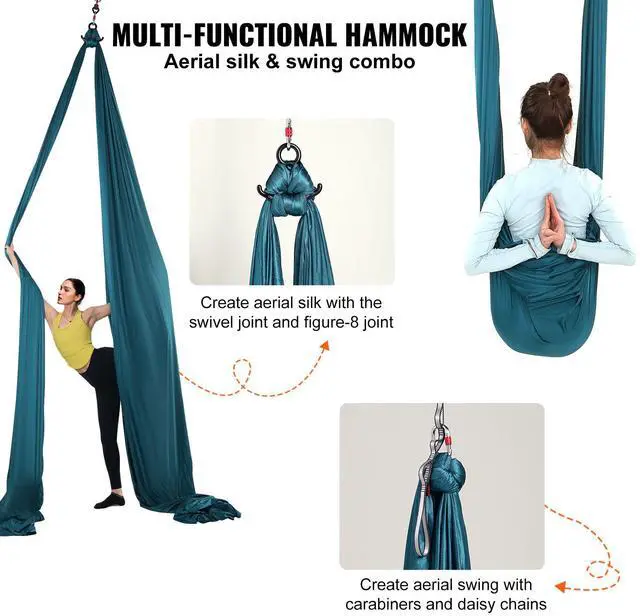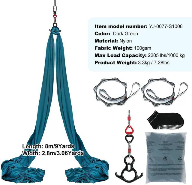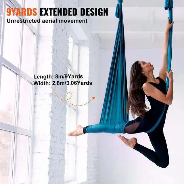 VEVOR Aerial Silk & Yoga Swing, 8.7 Yards, Aerial Yoga Hammock Kit with 100gsm Nylon Fabric, Full Rigging Hardware & Easy Set-up Guide, Antigravity Flying for All Levels Fitness Bodybuilding, Green