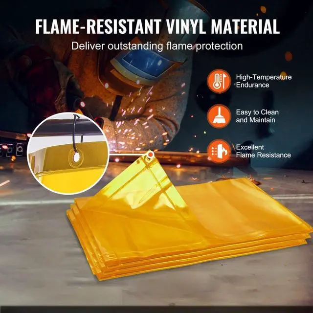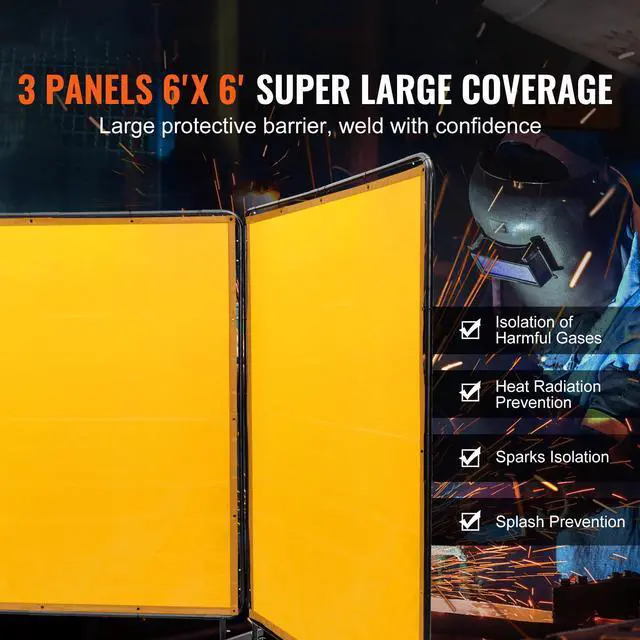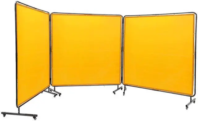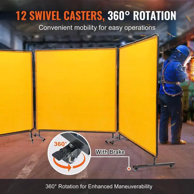 VEVOR Welding Screen with Frame, 6' x 6' 3 Panel Welding Curtain Screens, Flame-Resistant Vinyl Welding Protection Screen on 12 Swivel Wheels (6 Lockable), Moveable & Professional for Workshop, Yellow