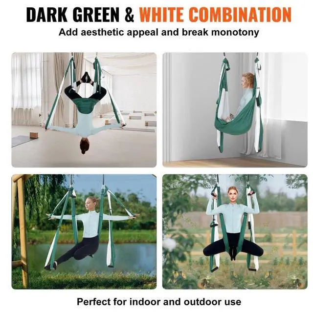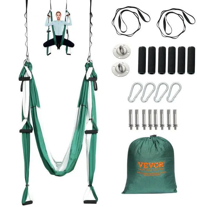 VEVOR Aerial Yoga Swing Set, 2.7 Yards Yoga Hammock Hanging Swing Aerial Sling Inversion Fly Kit Trapeze Inversion Equipment with Ceiling Mount Accessories, Max 661.38 lbs Load Capacity, Green/White