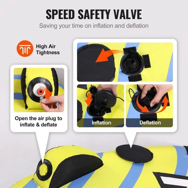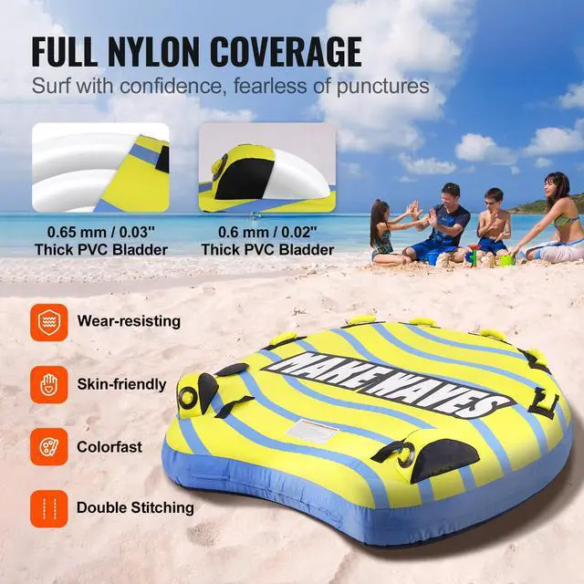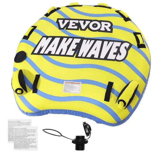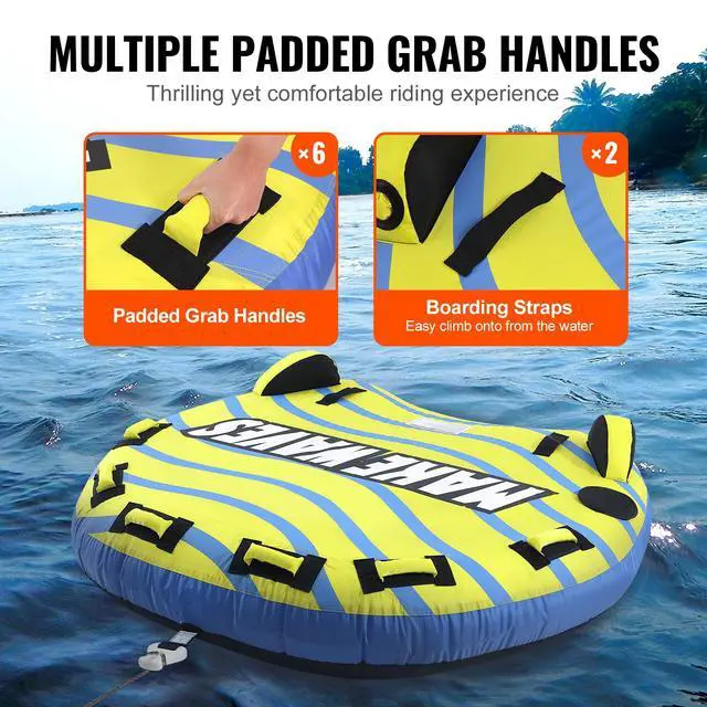 VEVOR Towable Tube for Boating, 1-3 Riders Inflatable Towable Tube with Bumper Fins, 510 lbs Water Sport Towable Tubes for Boats to Pull, Full Nylon Cover, EVA Grab Handles and Speed Safety Valve
