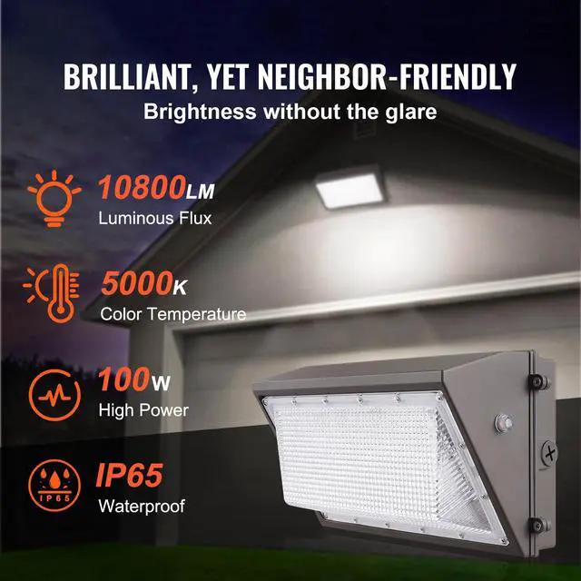 • VEVOR 4PCs LED Wall Pack Lights, 100W 10800LM, 5000K Commercial Outdoor Lights Security Lighting Fixture, with Intelligent Light Sensing 180 LED beads Energy Saving for Garages Yards, IP65 Waterproof