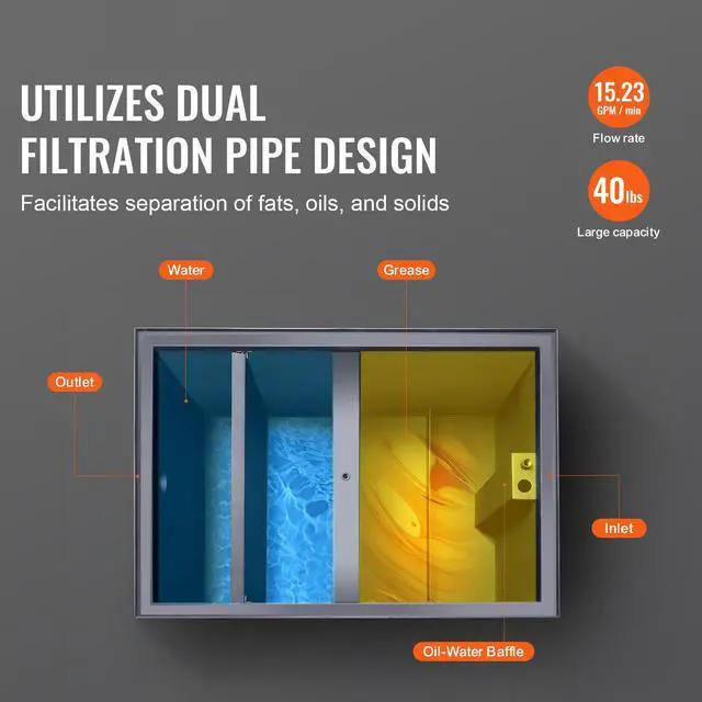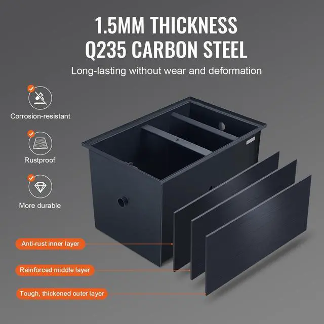 VEVOR 40LBS Commercial Grease Interceptor Trap Carbon Steel Waste Water Filter