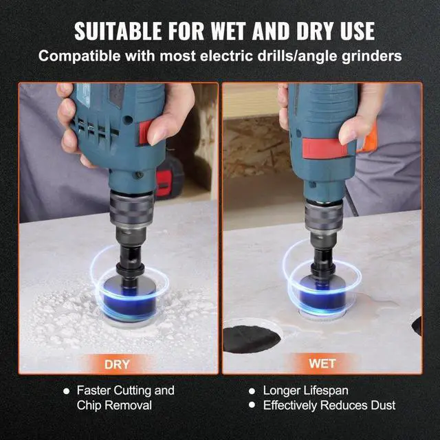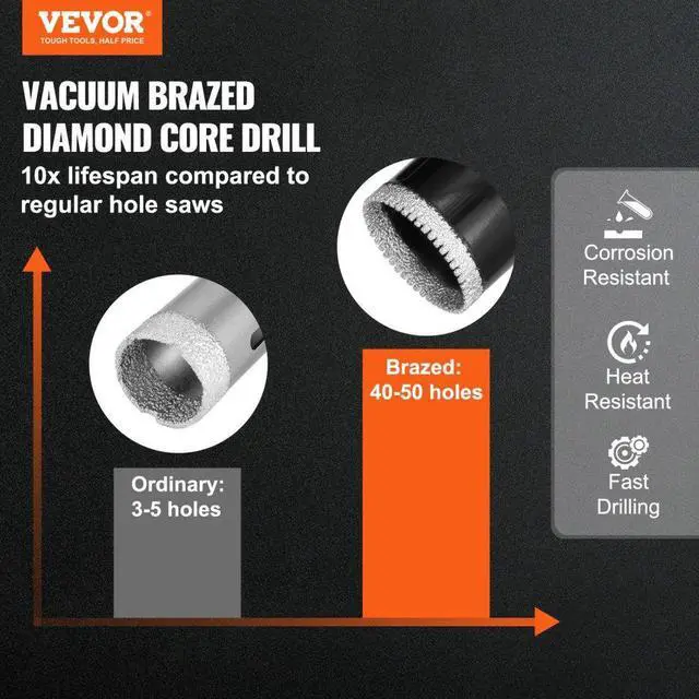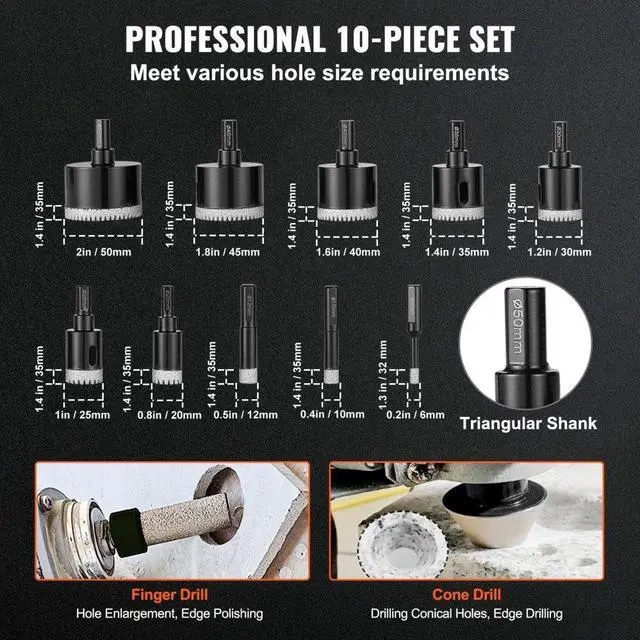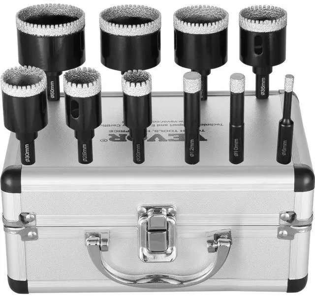 VEVOR Diamond Core Drill Bit Set, 10 PCS 6/10/12/20/25/30/35/40/45/50mm Diamond Hole Saw Kit, Triangular Shank, with Storage Case, for Dry and Wet, Diamond Drill Bits for Ceramic Tile Porcelain