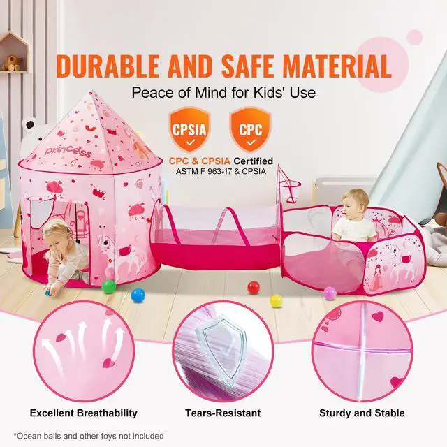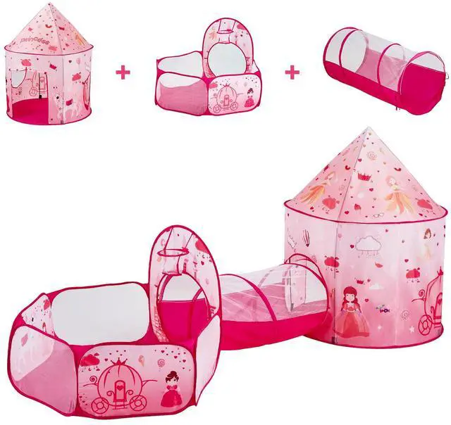 VEVOR 3 in 1 Kids Play Tent with Tunnel for Girls, Princes, Boys, Babies and Toddlers, Indoor/Outdoor Pop Up Playhouse with Carrying Bag & Banding Straps as Birthday Gifts, Magenta Color