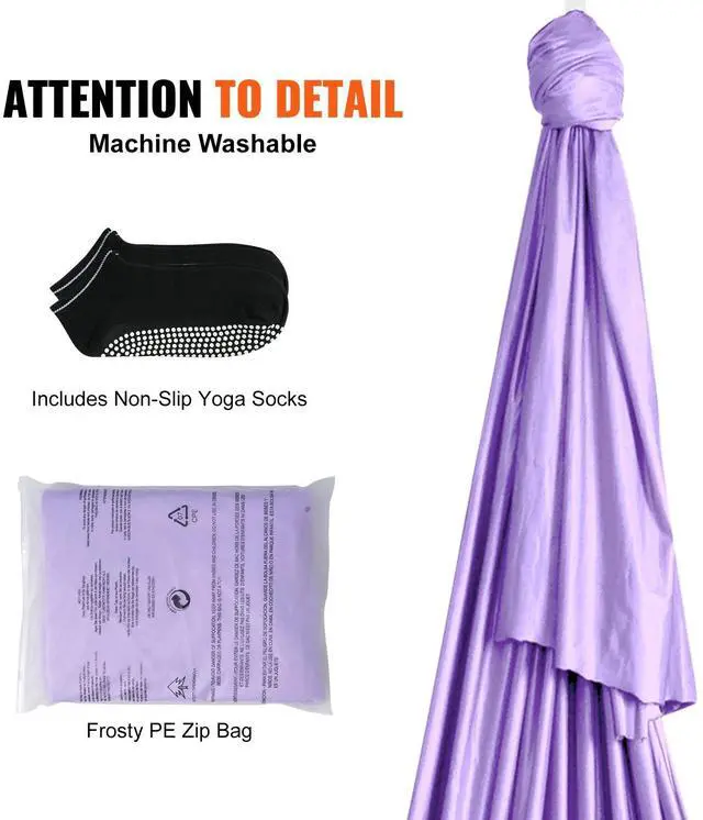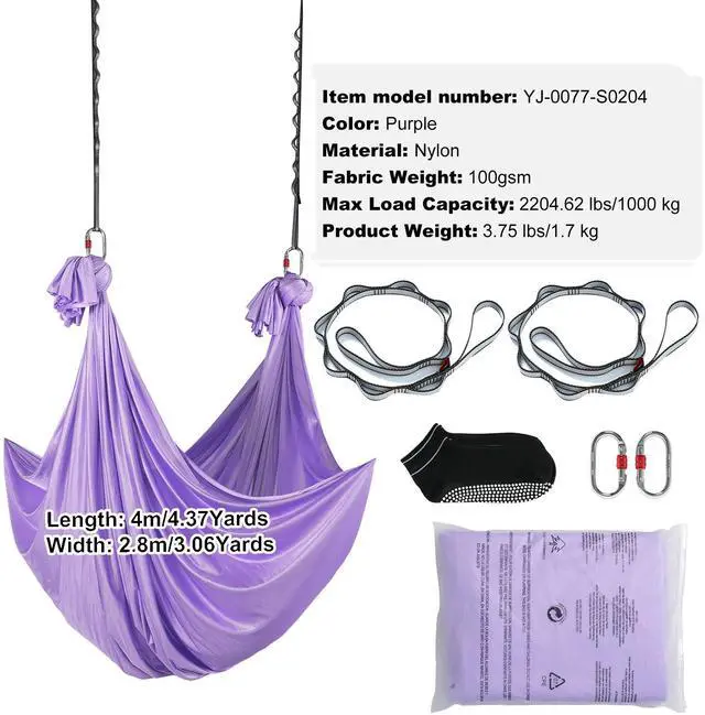 VEVOR Aerial Yoga Hammock & Swing, 4.4 Yards, Yoga Starter Kit with 100gsm Nylon Fabric, Full Rigging Hardware and Easy Set-up Guide, Antigravity Flying for All Levels Fitness Bodybuilding, Purple