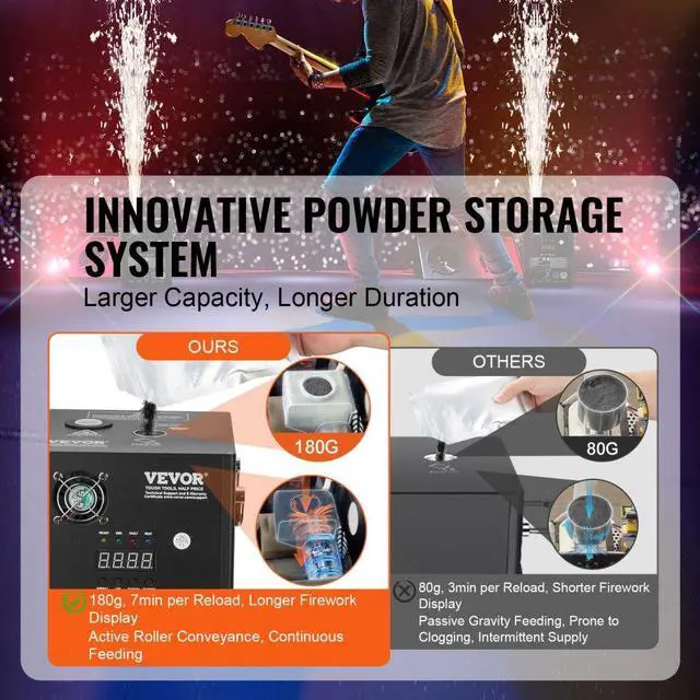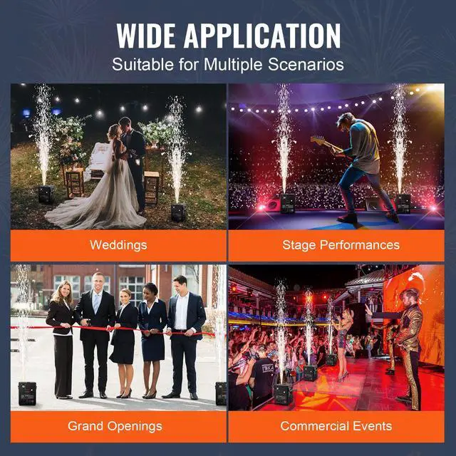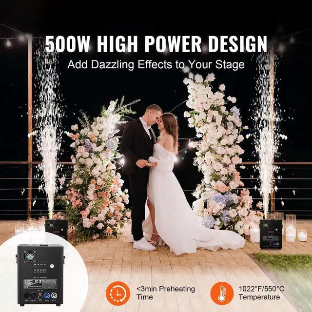 VEVOR Cold Spark Firework Machine 500W 6.6-13ft Stage DJ Wedding Event Party