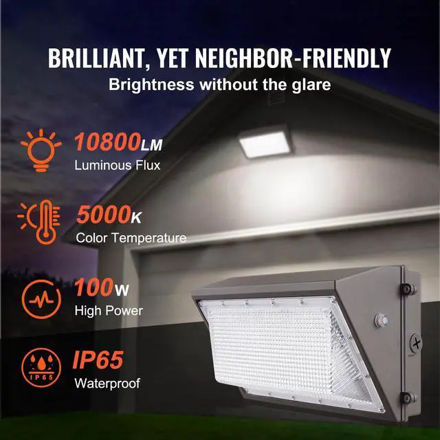 VEVOR 2PCs LED Wall Pack Lights, 100W 10800LM, 5000K Commercial Outdoor Lights Security Lighting Fixture, with Intelligent Light Sensing 180 LED beads Energy Saving for Garages Yards, IP65 Waterproof