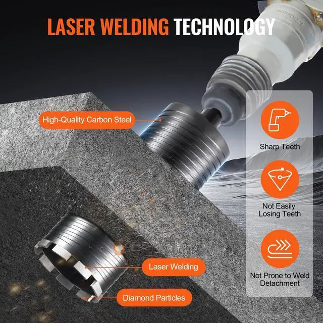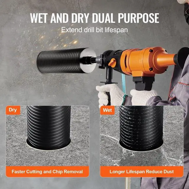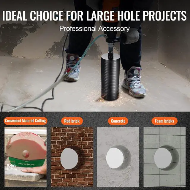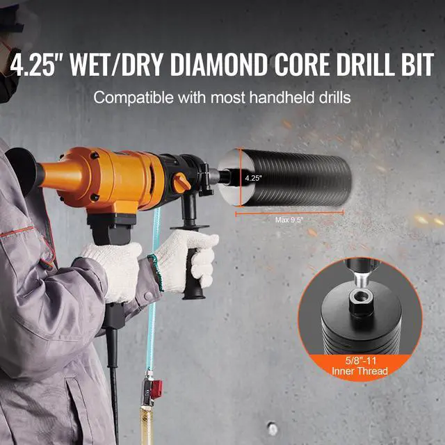 Wet/Dry Application: Wet or Dry,Net Weight (Including Accessories): 4.9 lbs / 2.2 kg,Maximum Core Depth: 9.5 in / 241.3 mm,Compatible Cutting Materials: Red Brick, Concrete, Foam Brick, etc.,Item Model Number: 107300AA,Compatible Machines: Handheld Drills,Product Dimensions: 11.4 x 4.3 x 4.3 in / 290 x 108 x 108 mm,Diameter: 4.25 in / 108mm,Adapter Specification: Inner Thread 5/8"-11,Welding Method: Laser Welding