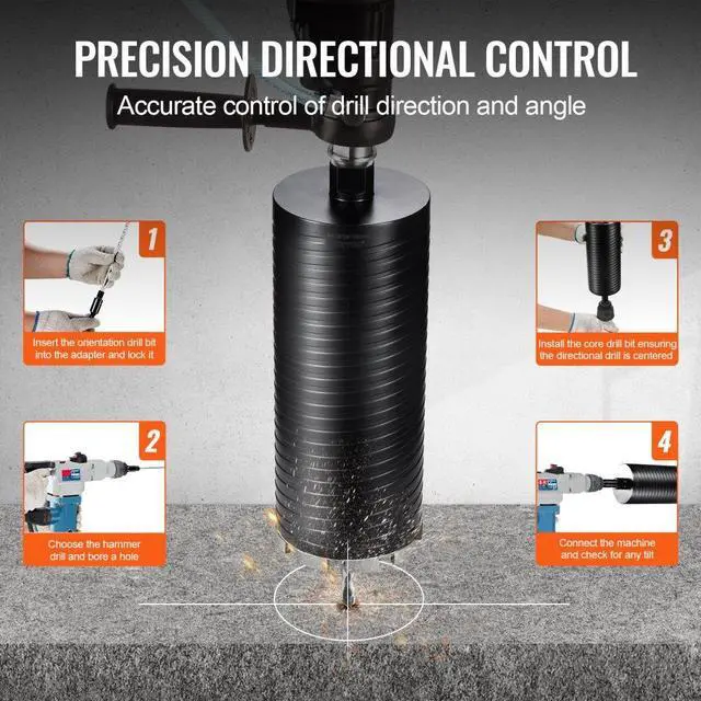 VEVOR Core Drill Bit, 4.25" Wet/Dry Diamond Core Drill Bits for Brick and Block, Concrete Core Drill Bit with Pilot Bit Adapter and Saw Blade, 9.5" Drilling Depth, 5/8"-11 Inner Thread, Laser Welding