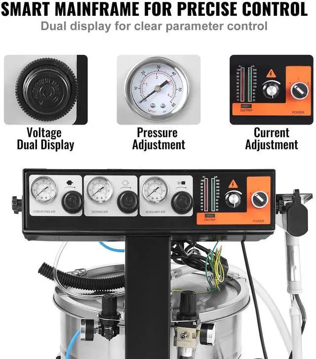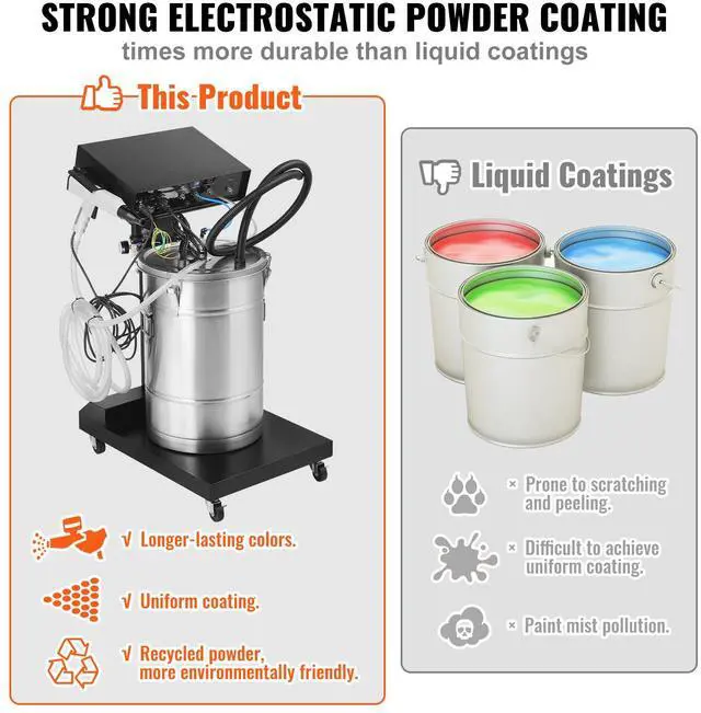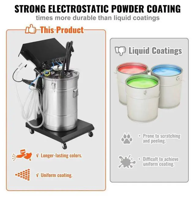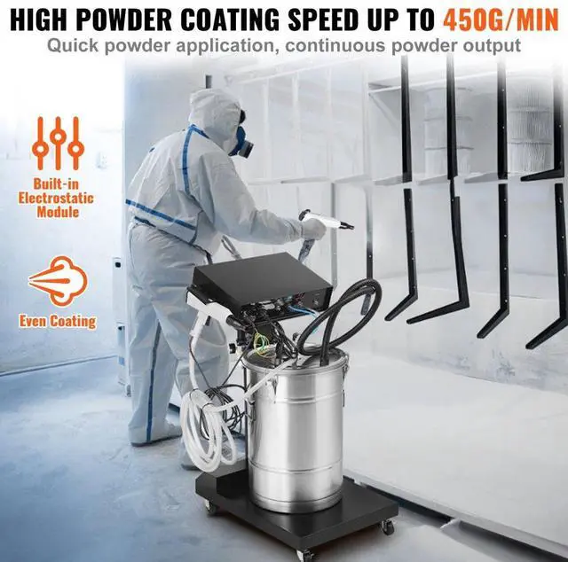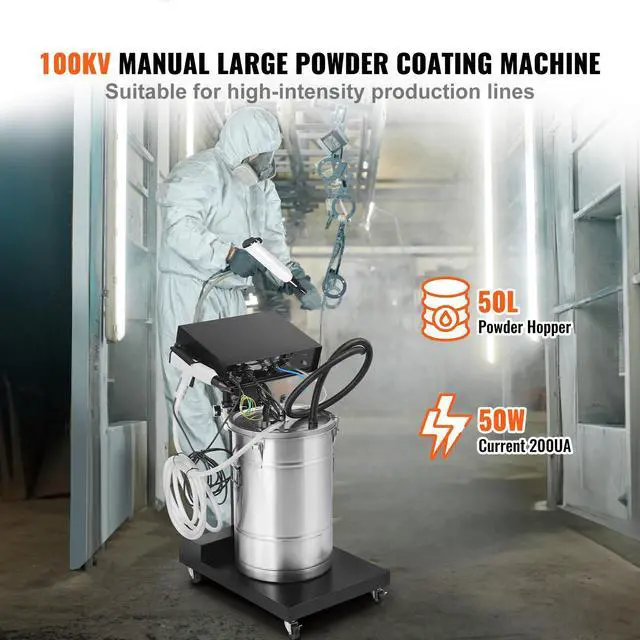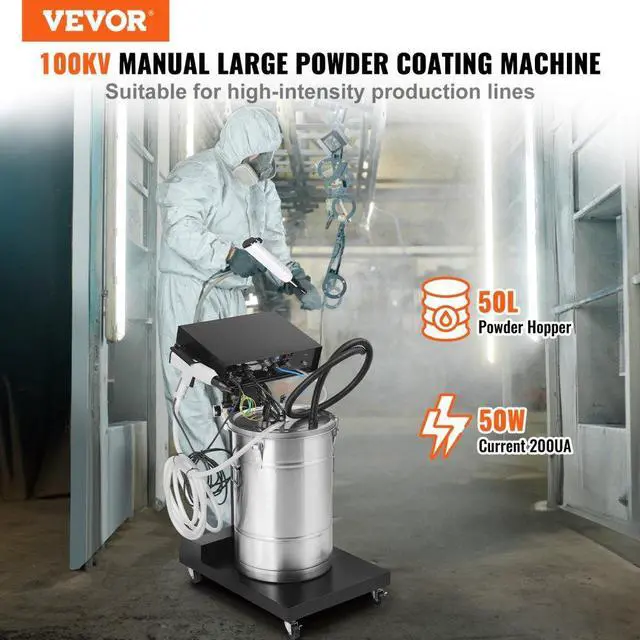 • VEVOR Powder Coating System, 50 W 100KV Electrostatic Output Powder Coating Kit with 50L Powder Hopper, 450g Per Minute Powder Coating Machine with Spray Gun and Trolley Base, for Indoor and Outdoor