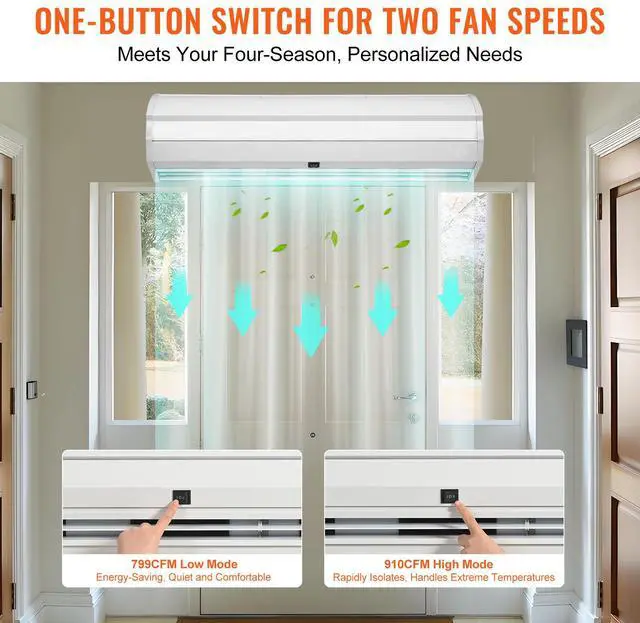 VEVOR 36" Commercial Indoor Air Curtain Super Power 2 Speeds 900CFM, Wall Mounted Air Curtains for Doors, Indoor Over Door Fan with Heavy Duty Limit Switch, Easy-Install 110V Unheated