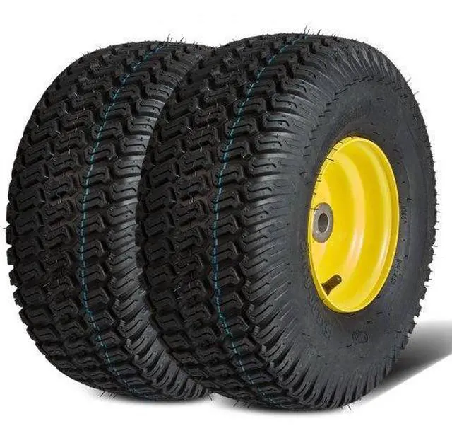 VEVOR Lawn Mower Tires with Rim, 15x6-6" Tubeless Tractor Tires, 2-Pack Tire and Wheel Assembly, S-Turf Pneumatic Tires, 3" Offset Hub, 3/4" Bushing Size, 16 PCS Adapters for Riding Mower Lawn Tractor