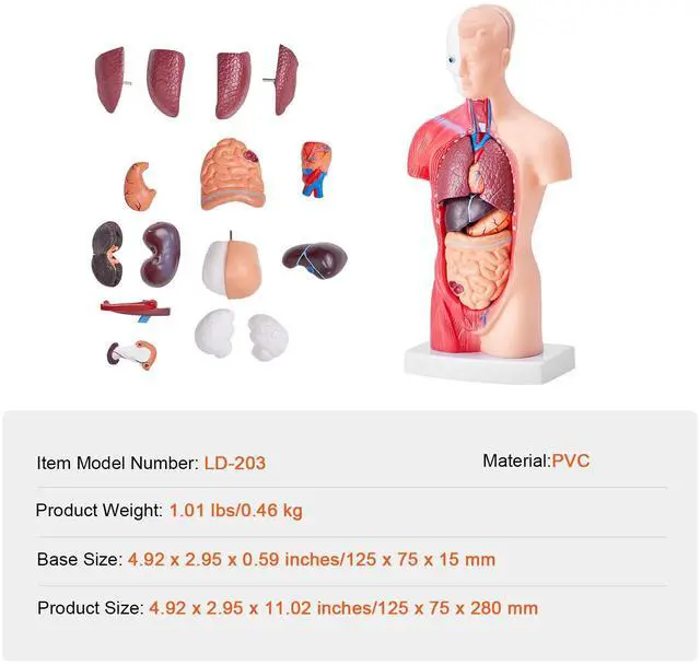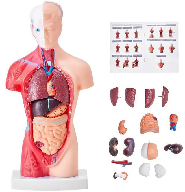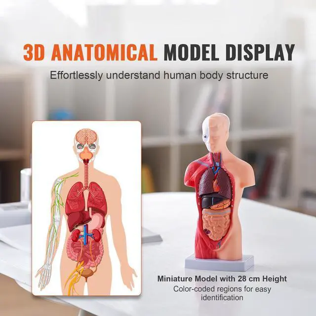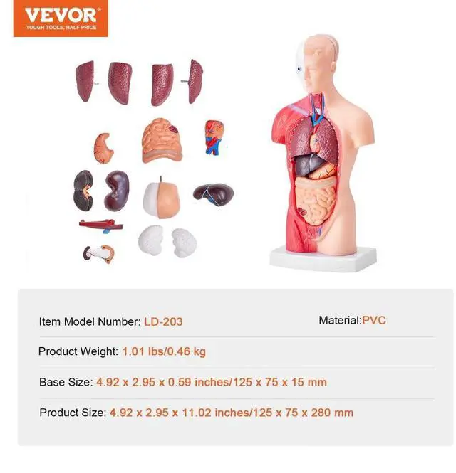 VEVOR Human Body Model, 15 Parts 11 inch, Human Torso Anatomy Model Anatomical Skeleton Model with Removable Organs, Educational Teaching Tool for Students Science Learning School Education Display