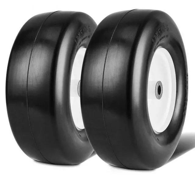 VEVOR Lawn Mower Tires with Rim, 13x5-6" Tubeless Tractor Tires, 2-Pack Tire and Wheel Assembly, Flat-free PU Tires, 3.25"-5.9" Centered Hub, 3/4" Bushing Size, 20 PCS Adapter for Lawn Mowers Tractors