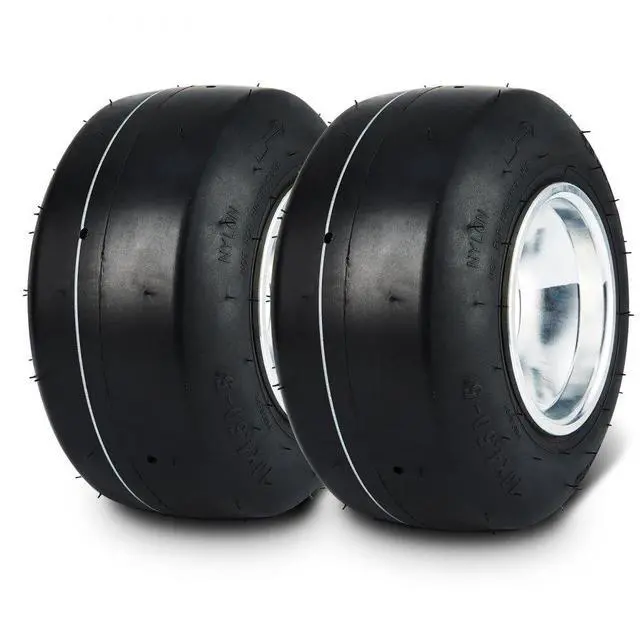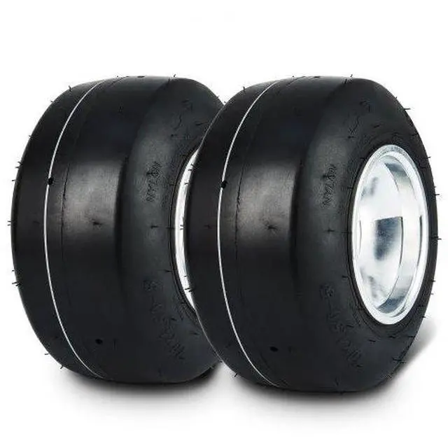 VEVOR Go Kart Tires and Rims, 10x4.5-5" Go Kart Wheels, 2-Pack Front Wheels, Aluminum Alloy Rims and Rubber Tires, Hub-Rim Fit Bolt Pattern 1.57 inch with 3 Bolt Holes, Replacement Pneumatic Tire