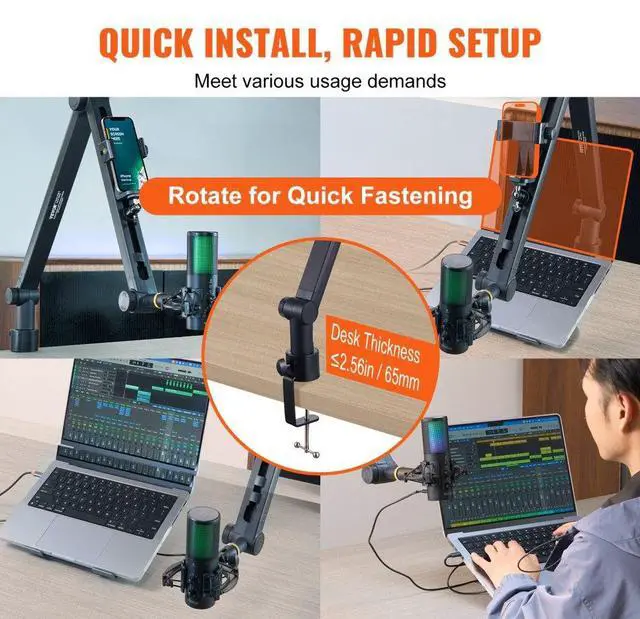 VEVOR Microphone Boom Arm with Desk Mount, 360° Rotatable, Adjustable Mic Stand with 3/8" to 5/8" Adapter Port, for Recording Blue Yeti Hyperx Quadcast Blue Snowball Shure SM7B Audio Technica