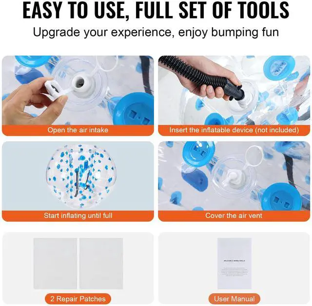 VEVOR Inflatable Bumper Balls 2-Pack, 5FT/1.5M Body Sumo Zorb Balls for Teen & Adult, 0.8mm Thick PVC Human Hamster Bubble Balls for Outdoor Team Gaming Play, Bumper Bopper Toys for Garden, Yard, Park
