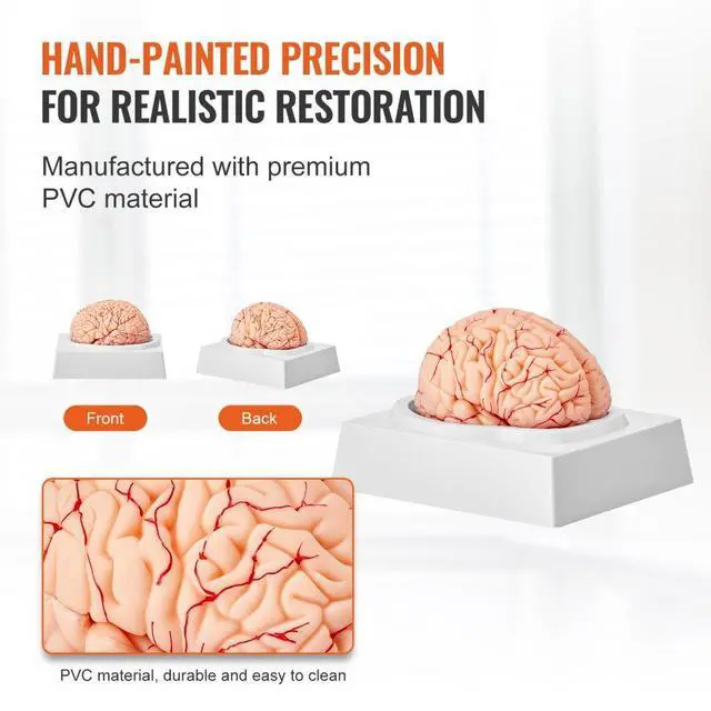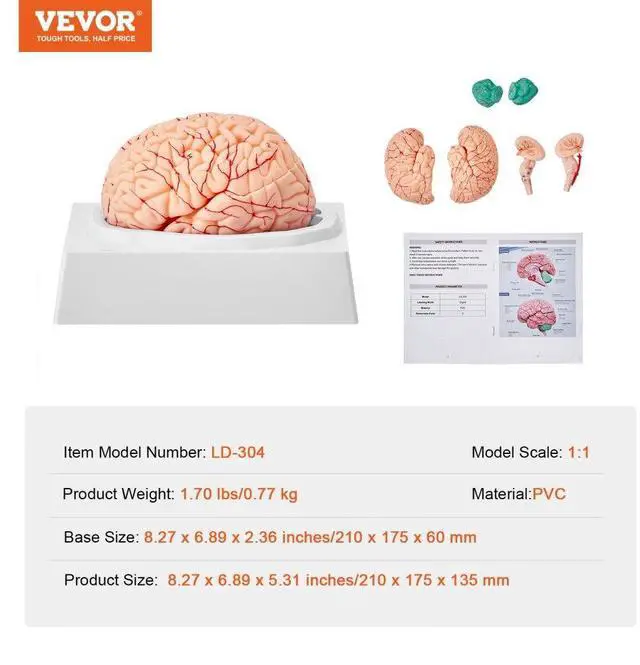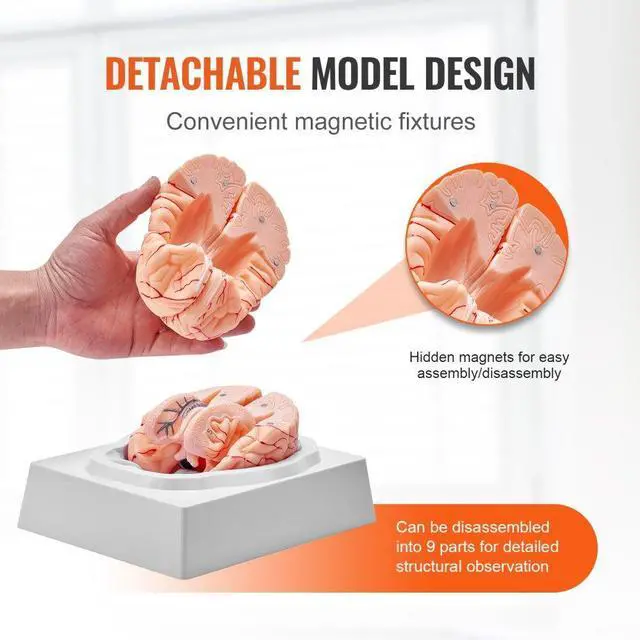 VEVOR Human Brain Model Anatomy, 1:1 Life-Size 9-Part Human Brain Anatomical Model with Labels & Display Base, Detachable Brain Model for Science Research Teaching Learning Classroom Study Display