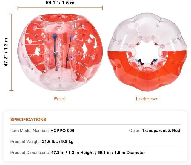 • VEVOR Inflatable Bumper Ball 1-Pack, 5FT/1.5M Body Sumo Zorb Balls for Teen & Adult, 0.8mm Thick PVC Human Hamster Bubble Balls for Outdoor Team Gaming Play, Bumper Bopper Toys for Garden, Yard, Park