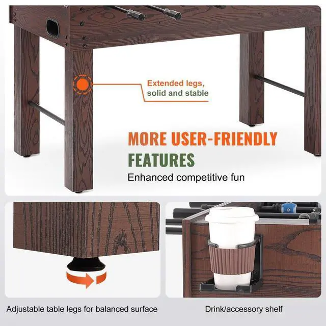 VEVOR Foosball Table, 55 inch Standard Size Foosball Table, Indoor Full Size Foosball Table for Home, Family, and Game Room, Soccer with Foosball Table Set, Includes 4 Balls and 2 Cup Holders