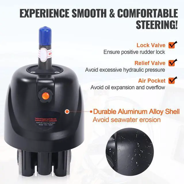 VEVOR Hydraulic Outboard Steering Kit, 150HP, Marine Boat Hydraulic Steering System, with Helm Pump Two-Way Lock Cylinder and 24 Feet Hydraulic Steering Hose, for Single Station Single-Engine Boats