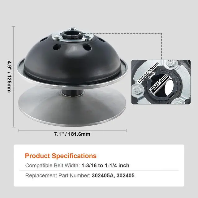 VEVOR Primary Drive Clutch, 780 Series Go-Kart Drive Clutch 1" Bore 1/4" Keyway Comet, for Taking a 1 3/16-1 1/4" Wide Belt 4 Cycle Engines, Replace# 302405A / 302405