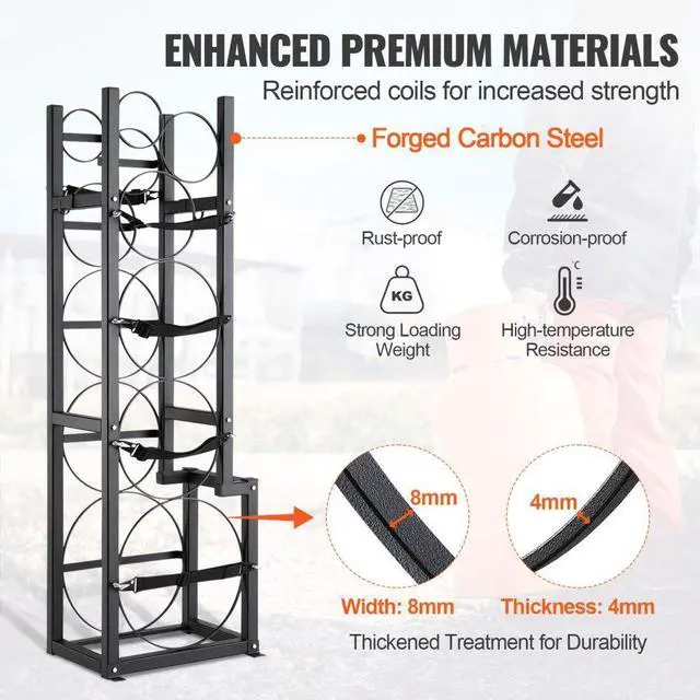 VEVOR Refrigerant Tank Rack, with 1 x 50lb, 2 x 30lb and Other 3 Small Bottle Tanks, Cylinder Tank Rack 15.55x12.99x49.8 in, Refrigerant Cylinder Rack and Holders for Freon, Gases, Oxygen, Nitrogen