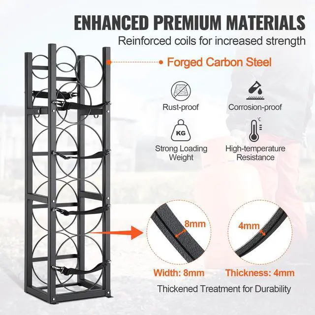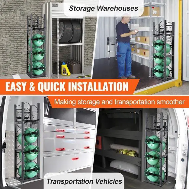 VEVOR Refrigerant Tank Rack, with 3 x 30lbs and Other 3 Small Bottle Tanks, Cylinder Tank Rack 12.79x12.99x47.12 in, Refrigerant Cylinder Rack and Holders for Freon, Gases, Oxygen, Nitrogen
