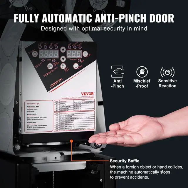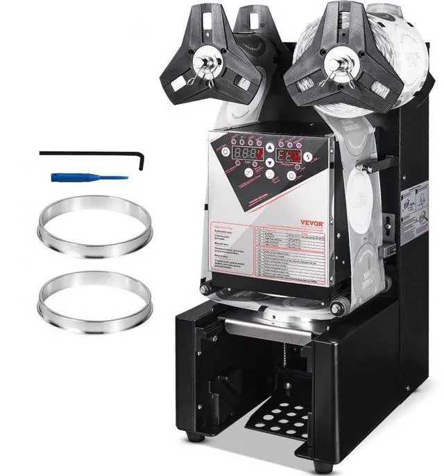 VEVOR Fully Automatic Cup Sealing Machine, 500-650 Cups/H, Cup Sealer Machine for 190 mm Tall & 90/95 mm Cup, Electric Boba Tea Sealer with Digital Control LCD Panel for Bubble Milk Tea Coffee, Black
