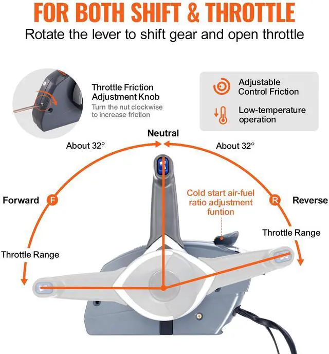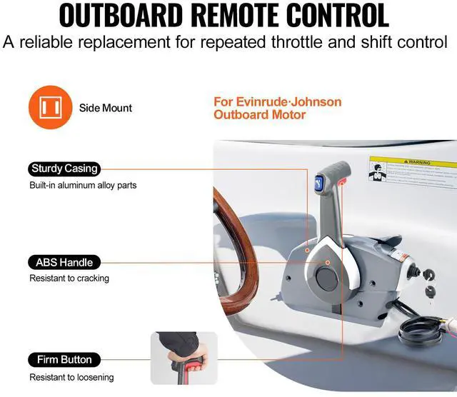 VEVOR Boat Throttle Control, 5006180 Side-Mounted Outboard Remote Control Box for Evinrude Johnson, Marine Throttle Control Box with Power Trim Switch and Lanyard