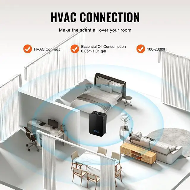 VEVOR Upgrade HVAC Scent Diffuser, Smart Scent Air Machine for Home, 180ML with Cold Air Technology, Waterless Essential Oil Diffuser, Cover Up to 2000 Sq.Ft for Living Room, Office, Spa, Hotel