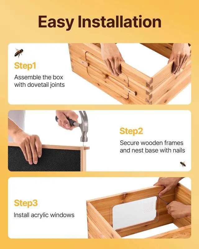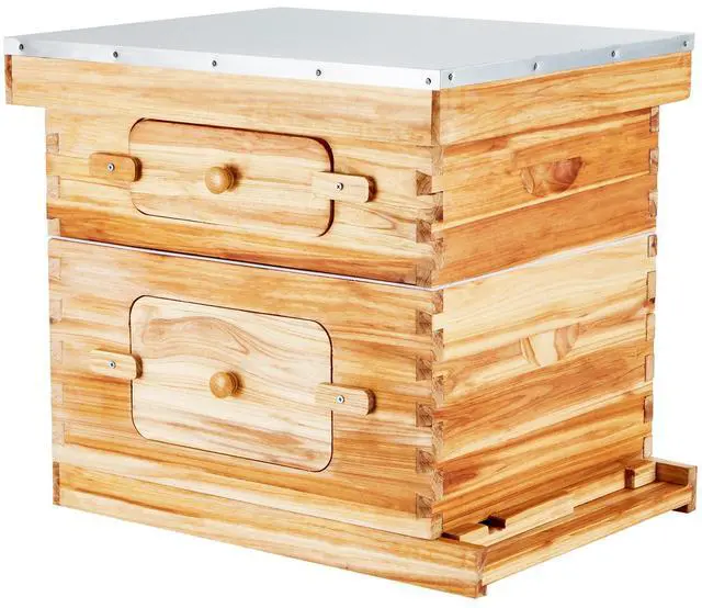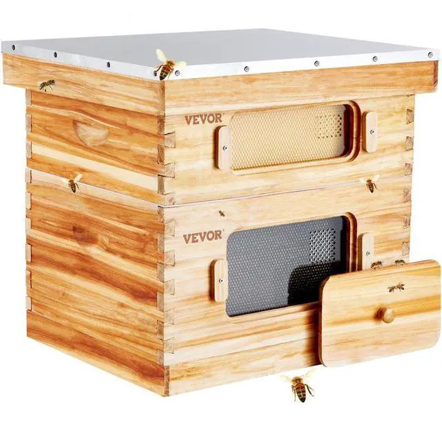 VEVOR Bee Hive 20 Frame Bee Hives Starter Kit, Beeswax Coated Cedar Wood, 1 Deep + 1 Medium Bee Boxes Langstroth Beehive Kit, Transparent Acrylic Windows with Foundations for Beginners Pro Beekeepers