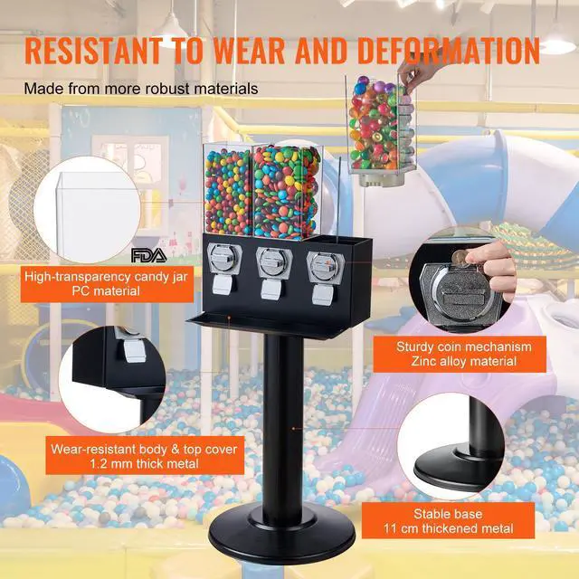VEVOR Gumball Machine with Stand Vending Coin Bank Vintage Candy Dispenser Black