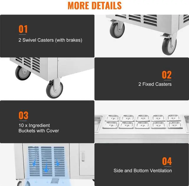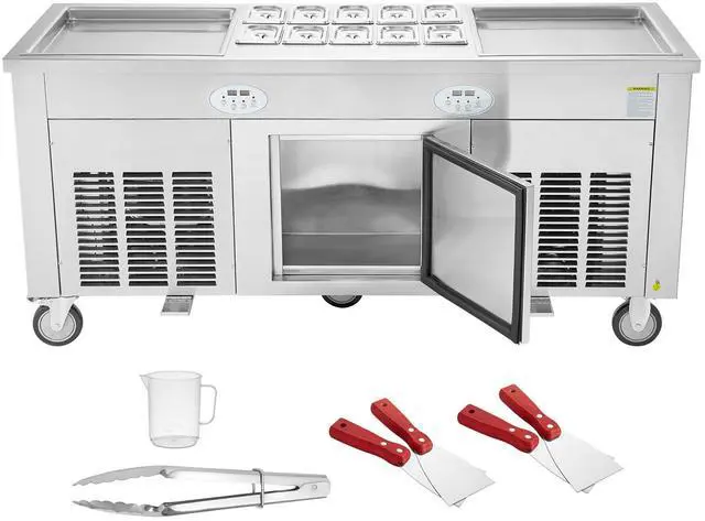 VEVOR Fried Ice Cream Roll Machine, 2Pcs 17.7" x 17.7" Square Stir-Fried Ice Cream Pans, Stainless Steel Commercial Rolled Ice Cream Maker with Compressor and 4 Scrapers, for Ice Cream, Frozen Yogurt