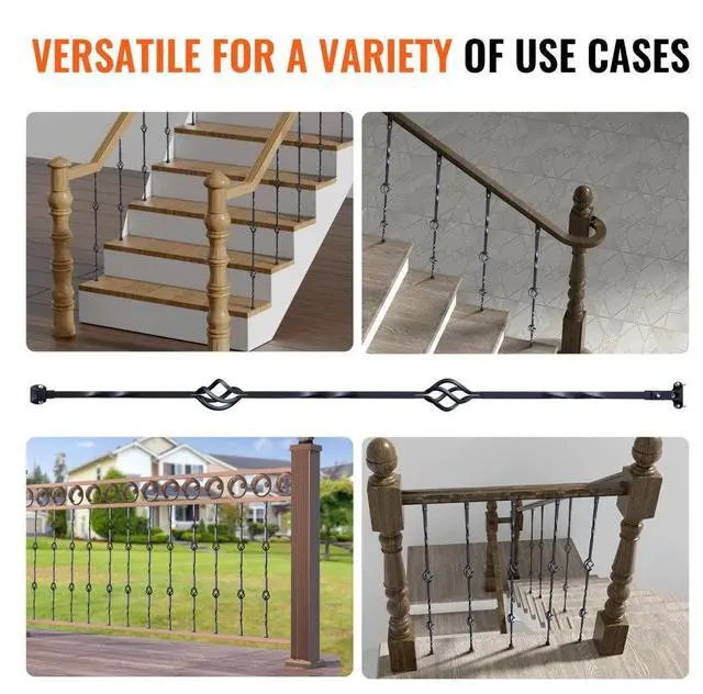 VEVOR Staircase Metal Balusters, 44'' x 1/2" Galvanized Steel Decorative Banister Spindles, 10 Pack Deck Baluster with Hollow Double Baskets, Spiral Stair Railing with Shoes & Screws