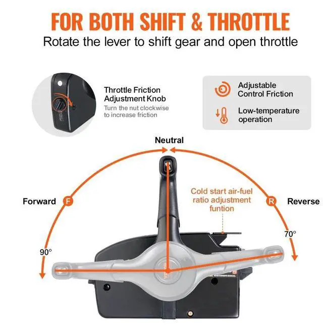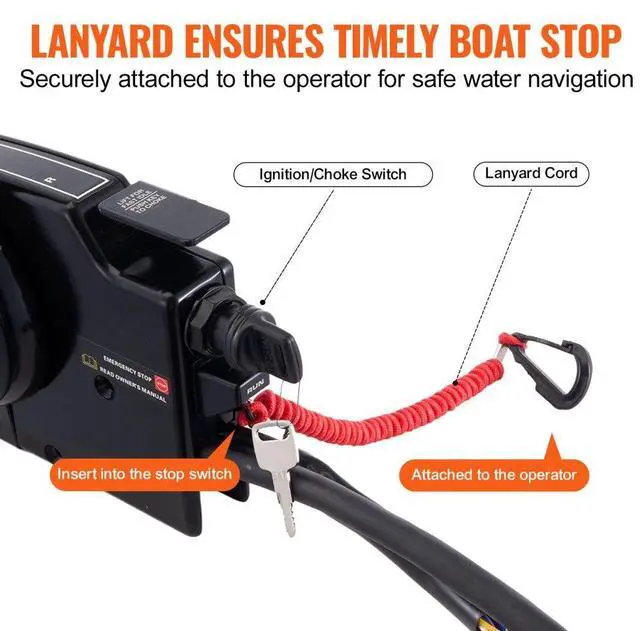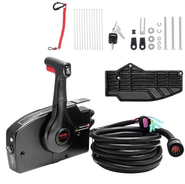 VEVOR Boat Throttle Control, 881170A13 Side-Mounted Outboard Remote Control Box for Mercury PT 4-Stroke, Marine Throttle Control Box with Power Trim Switch, 16.6 ft Harness 14 Pin, and Lanyard