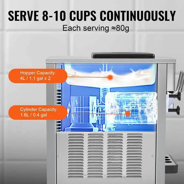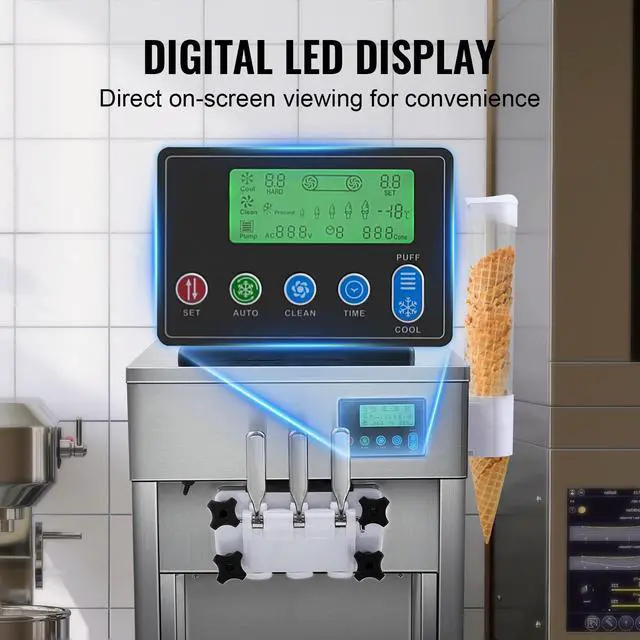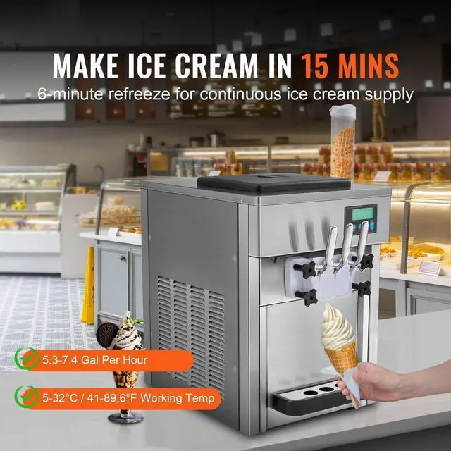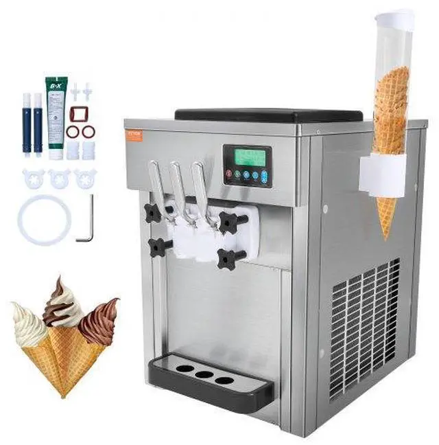 VEVOR Commercial Ice Cream Machine, 21 QT/H Yield, 1800W 3-Flavor Countertop Soft Serve Ice Cream Maker, 2 x 4L Hopper 2 x 1.8L Cylinder, LCD Panel Auto Clean Pre-cooling, for Restaurant Snack Bar