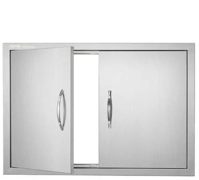VEVOR BBQ Access Door, 30W x 21H Inch Double Outdoor Kitchen Door, Stainless Steel Flush Mount Door, Wall Vertical Door with Handles, for BBQ Island, Grilling Station, Outside Cabinet
