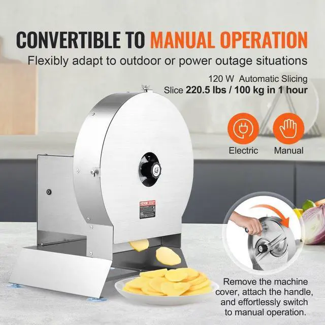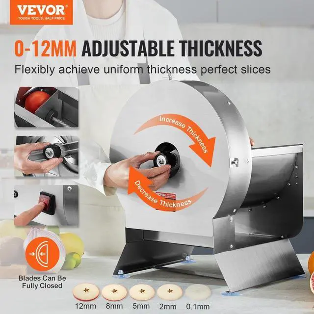 VEVOR Electric Vegetable Slicer, 0-0.5"/0-12mm Thickness Adjustable Commercial Slicer Machine, Convertible to Manual, Stainless Steel Food Cutter Slicing Machine, Large Feed Port for Potato, Tomato