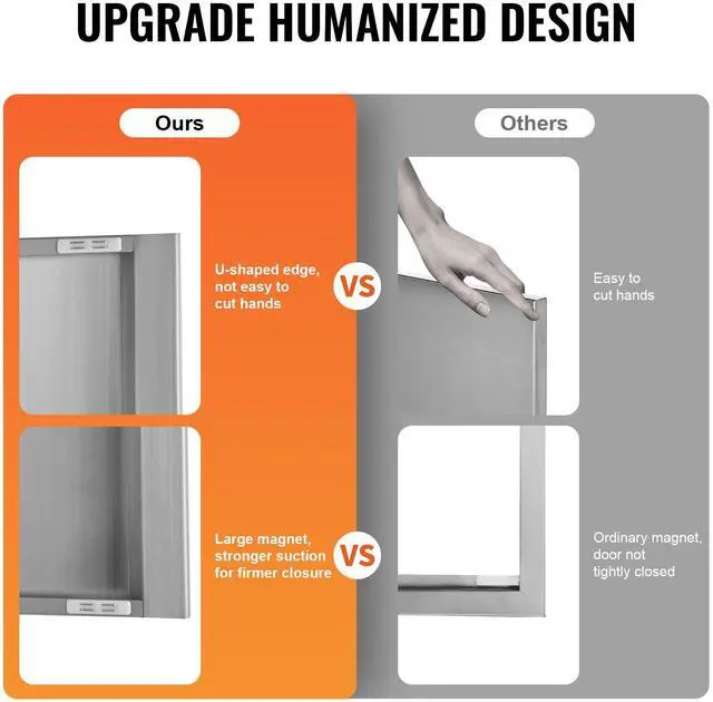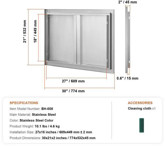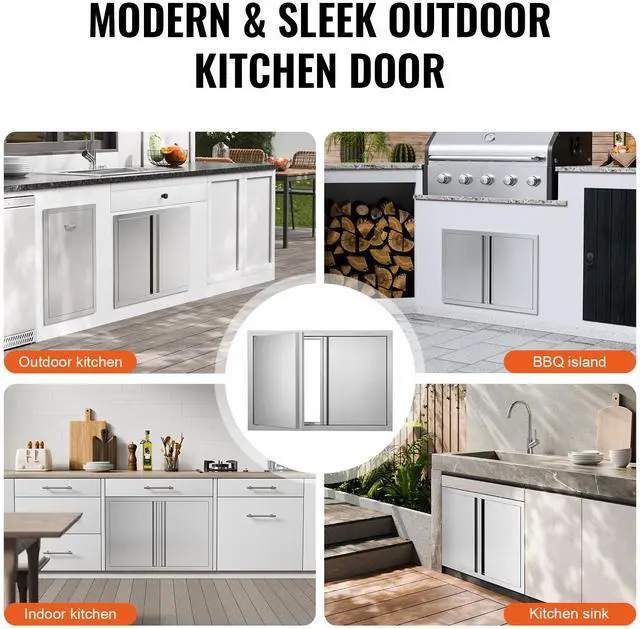VEVOR BBQ Access Door, 30W x 21H Inch Double Outdoor Kitchen Door, Stainless Steel Flush Mount Door, Wall Vertical Door with Recessed Handles , for BBQ Island, Grilling Station, Outside Cabinet