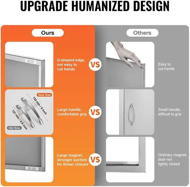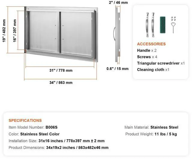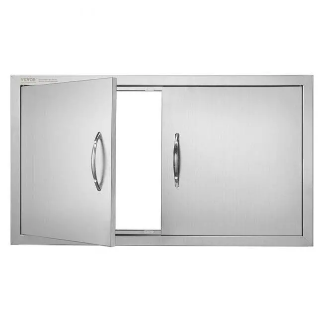 VEVOR BBQ Access Door, 34W x 19H Inch Double Outdoor Kitchen Door, Stainless Steel Flush Mount Door, Wall Vertical Door with Handles, for BBQ Island, Grilling Station, Outside Cabinet