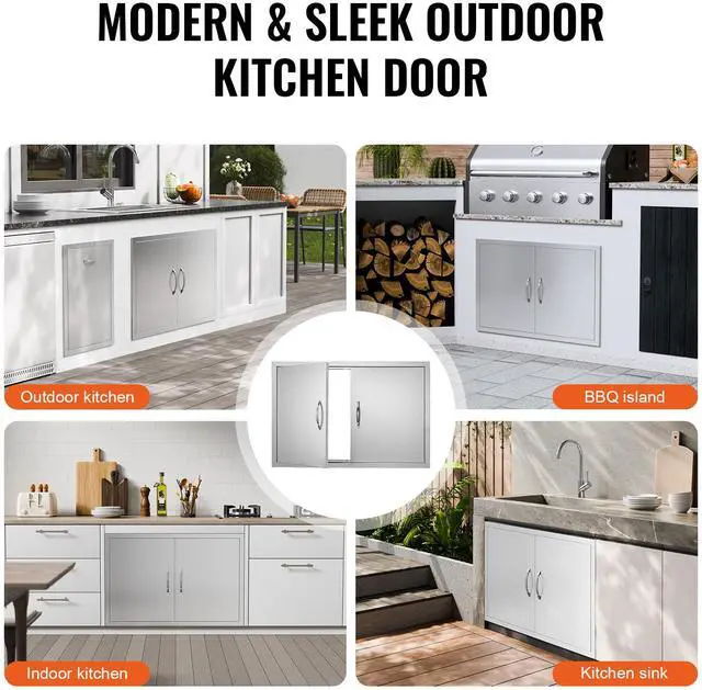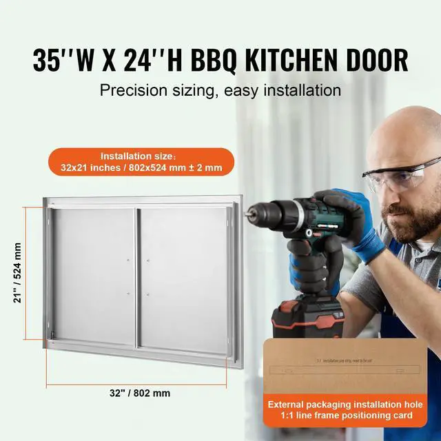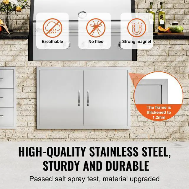 VEVOR BBQ Access Door, 35W x 24H Inch Double Outdoor Kitchen Door, Stainless Steel Flush Mount Door, Wall Vertical Door with Handles, for BBQ Island, Grilling Station, Outside Cabinet