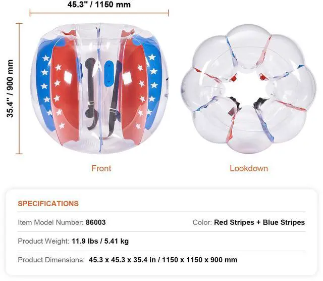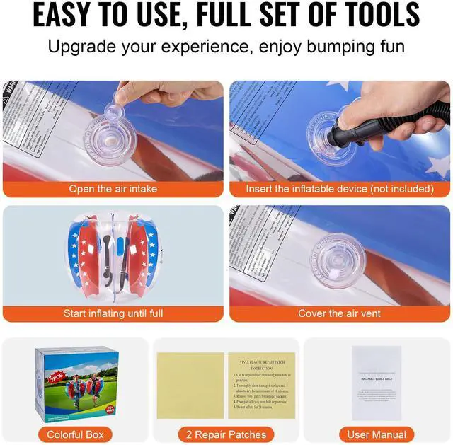 • VEVOR Inflatable Bumper Balls 2-Pack 4FT/1.2M PVC Sumo Zorb Balls for Kid & Teen