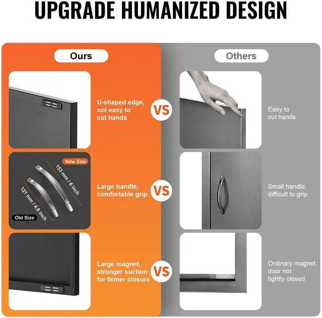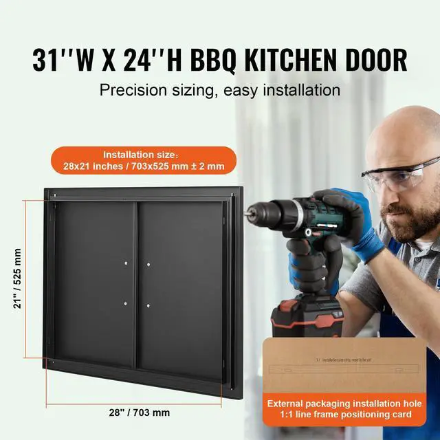 VEVOR BBQ Access Door, 31W x 24H Inch Double Outdoor Kitchen Door, Cold Plate Flush Mount Door, Wall Vertical Door with Handles, for BBQ Island, Grilling Station, Outside Cabinet