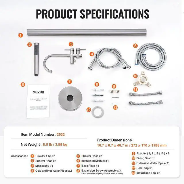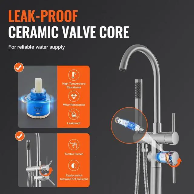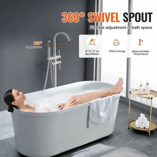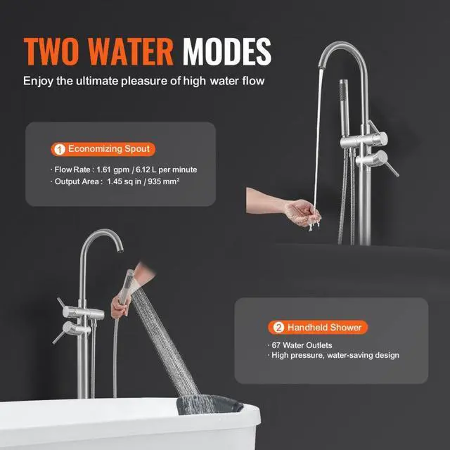VEVOR Freestanding Bathtub Faucet, Floor Mount, Freestanding Tub Filler, Shower Mixer Taps, Two Water Modes, 360° Swivel Spout, for Bathing & Showering Pet Bathing Cleaning Drains Toilet Flushing