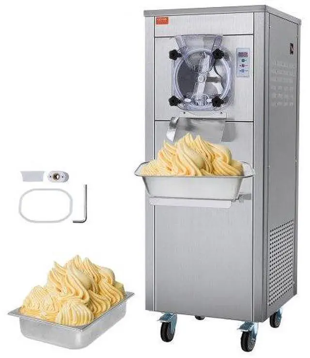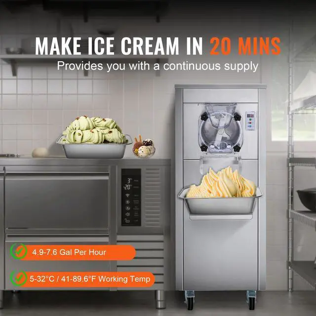 VEVOR Commercial Ice Cream Machine, 18 L/H Yield, 1780W Single Flavor Hard Serve Ice Cream Maker with Wheels, 6L Stainless Steel Cylinder, LED Panel Auto Clean Pre-cooling, for Restaurant Snack Bars