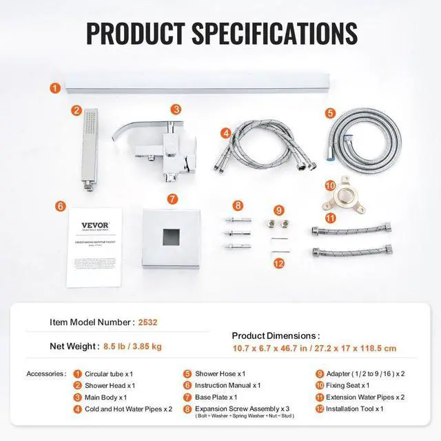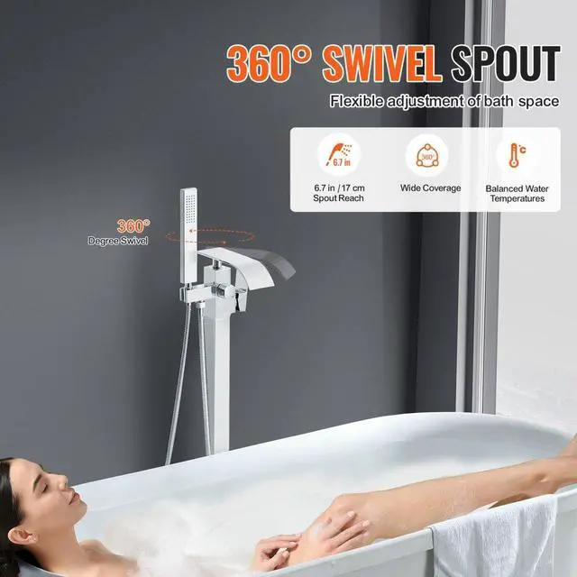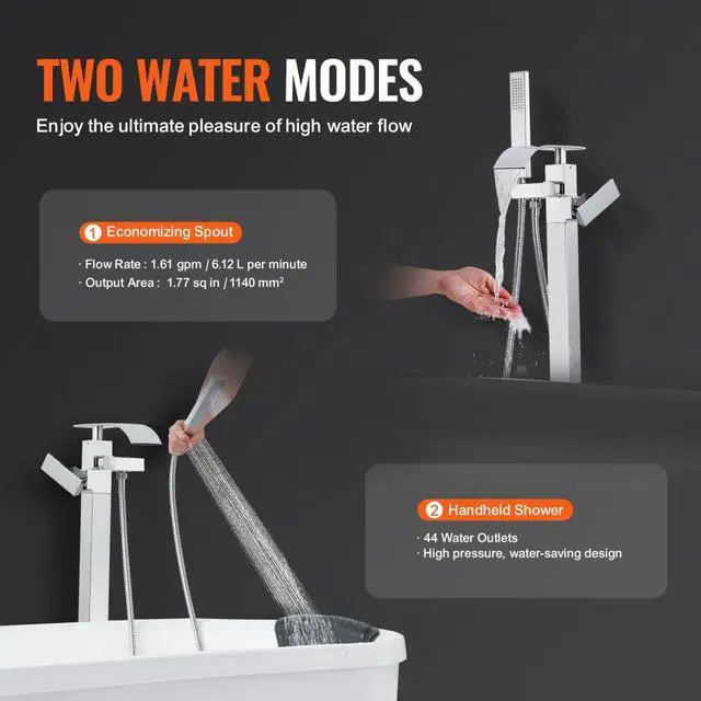 VEVOR Freestanding Bathtub Faucet, Floor Mount, Freestanding Tub Filler, Shower Mixer Taps, Two Water Modes, 360° Swivel Spout, for Bathing & Showering Pet Bathing Cleaning Drains Toilet Flushing